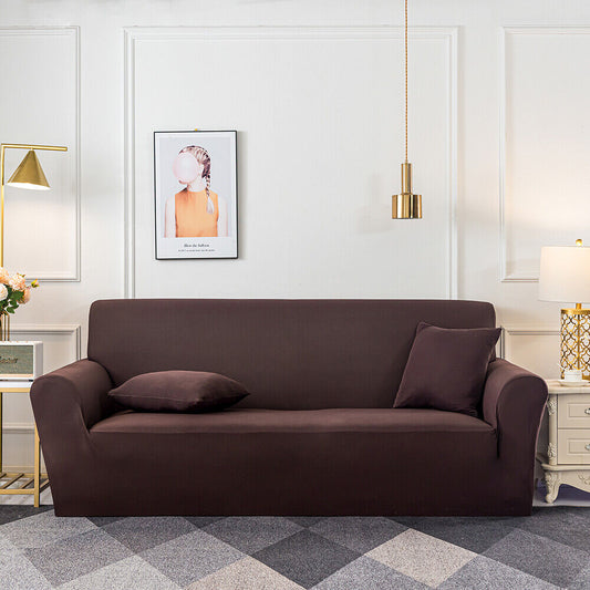 Jersey Fitted Sofa Covers Lounge Protector - Coffee