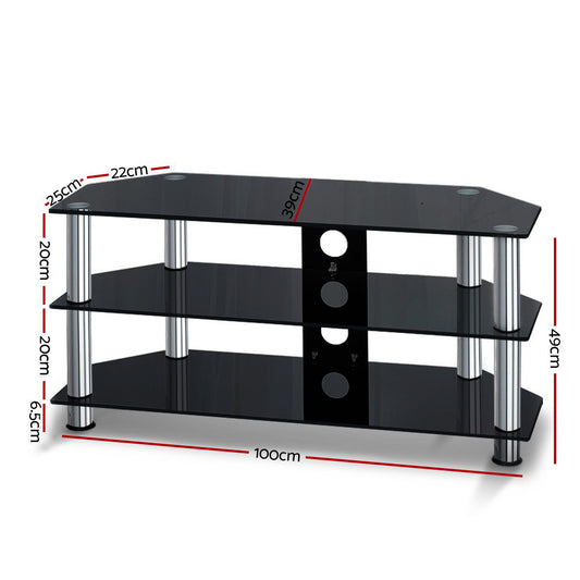 Modern TV Stand Entertainment Unit Media Cabinet Temptered Glass 3 Tiers