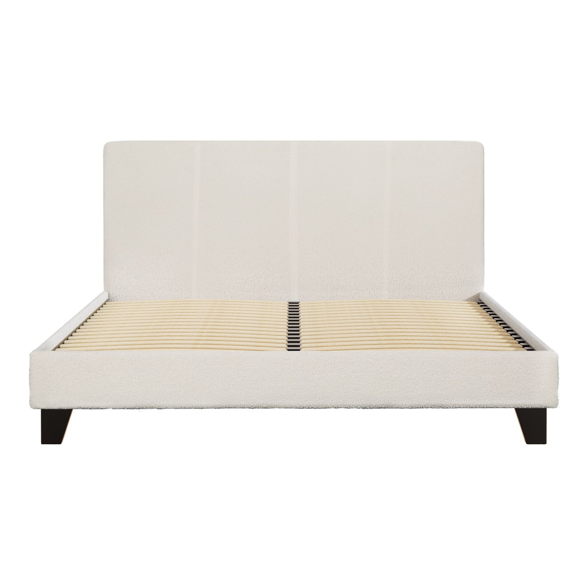 Add a touch of cosiness to your bedroom with our Artiss Neo bed frame. Wrapped in premium boucle fabric, the bed frame is aesthetically pleasing and extremely pleasant and smooth to touch. It will make you feel comfortable. The bed frame comes attached with a textured bed head. It has high-density foam padding, which makes it a cosy spot to sit back and relax, watch a movie, or read a book. Furthermore, the wooden arched slatted base allows the bed flex properly. It prevents partner disturbance. The slats are quite thick and will provide good support to your mattress. This bed frame has premium heavy-duty metal fixings and solid legs. So you don't have to worry about stability. It'll keep the bed stable and prevent shaking. Additionally, this bedframe is available in single, king single, double, and queen and fits Australian standard size mattresses. And the gorgeous cream shade enables you to style it in any bedroom style. It'll seamlessly blend in your home décor.