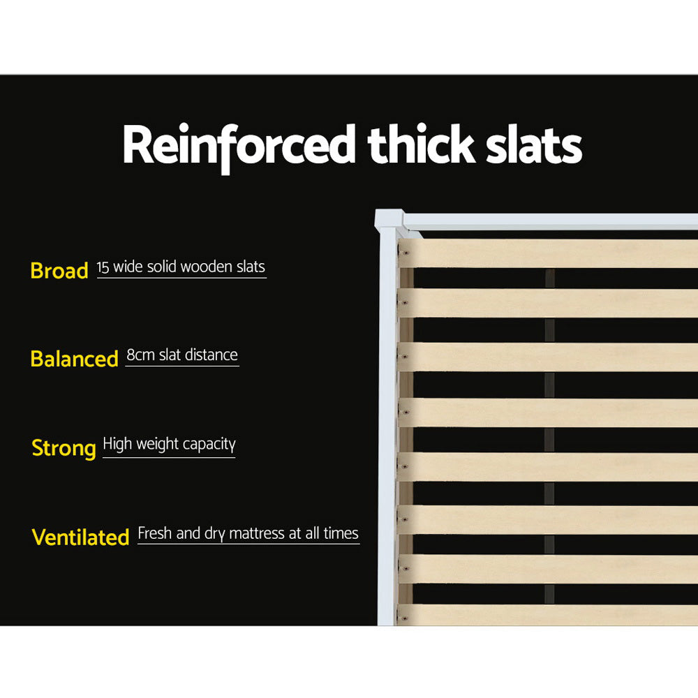 Made of solid pine wood, the Sofie Bed Frame is an all-round functional design that is compatible with most Australian sized mattresses and ideal for use by both young and old alike.