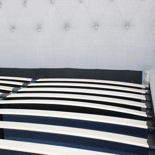 Bed Frame Queen Size in Grey Fabric Upholstered French Provincial High Bedhead