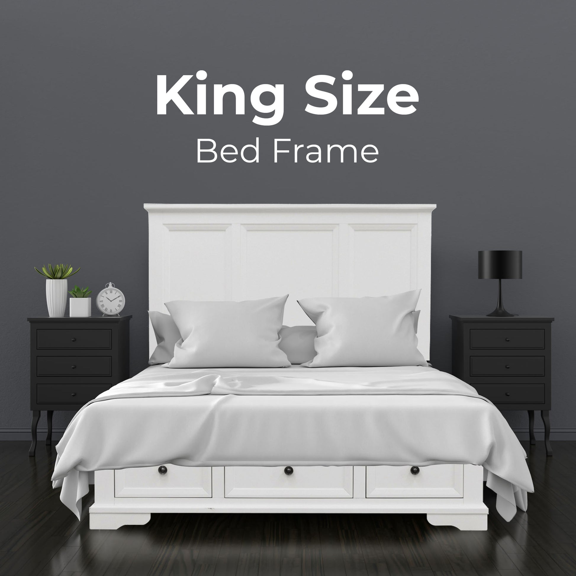 Celosia 4pc King Bed Frame Bedroom Suite Timber Bedside Tallboy Package - White