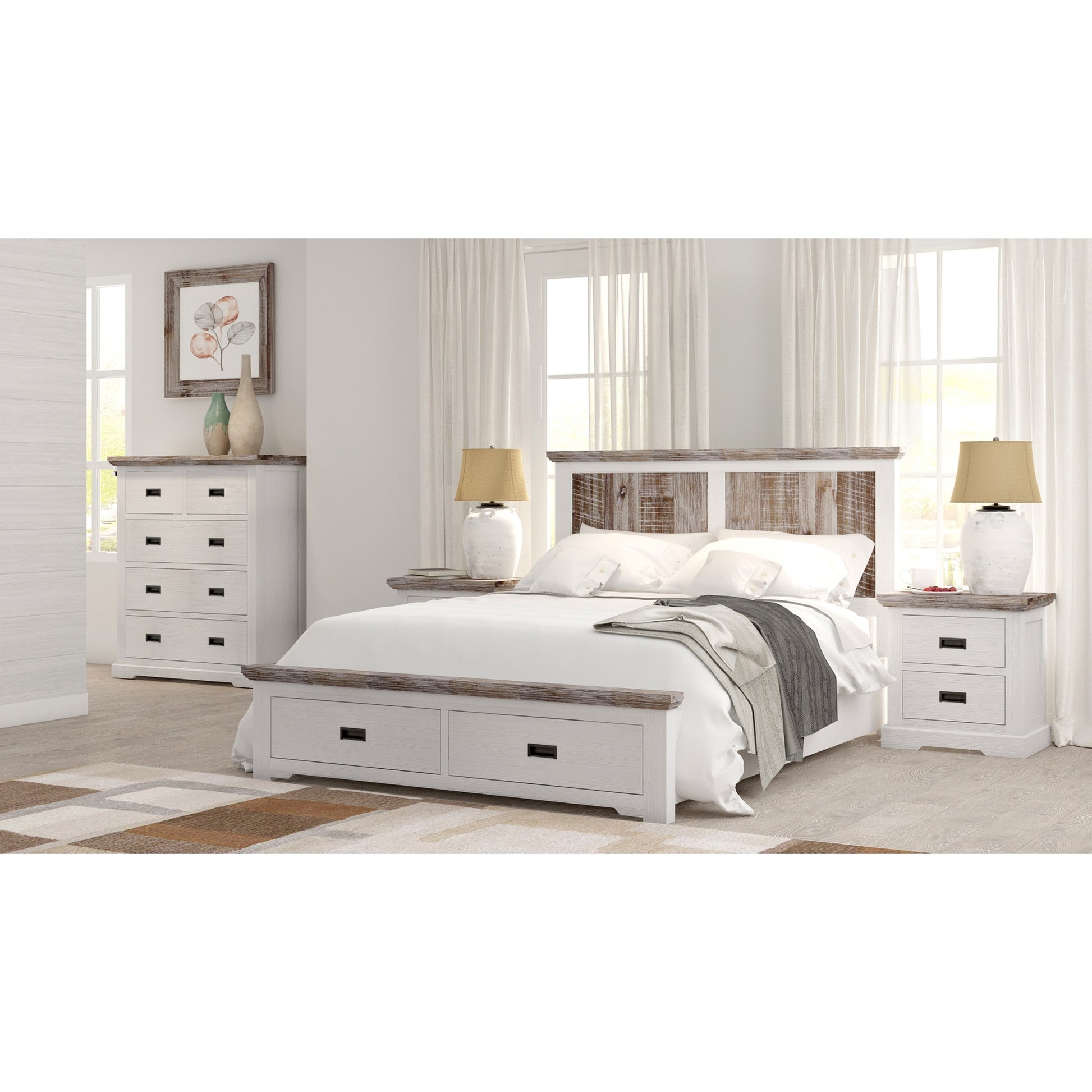 Fiona Bed Frame King Size Timber Mattress Base With Storage Drawers White Grey