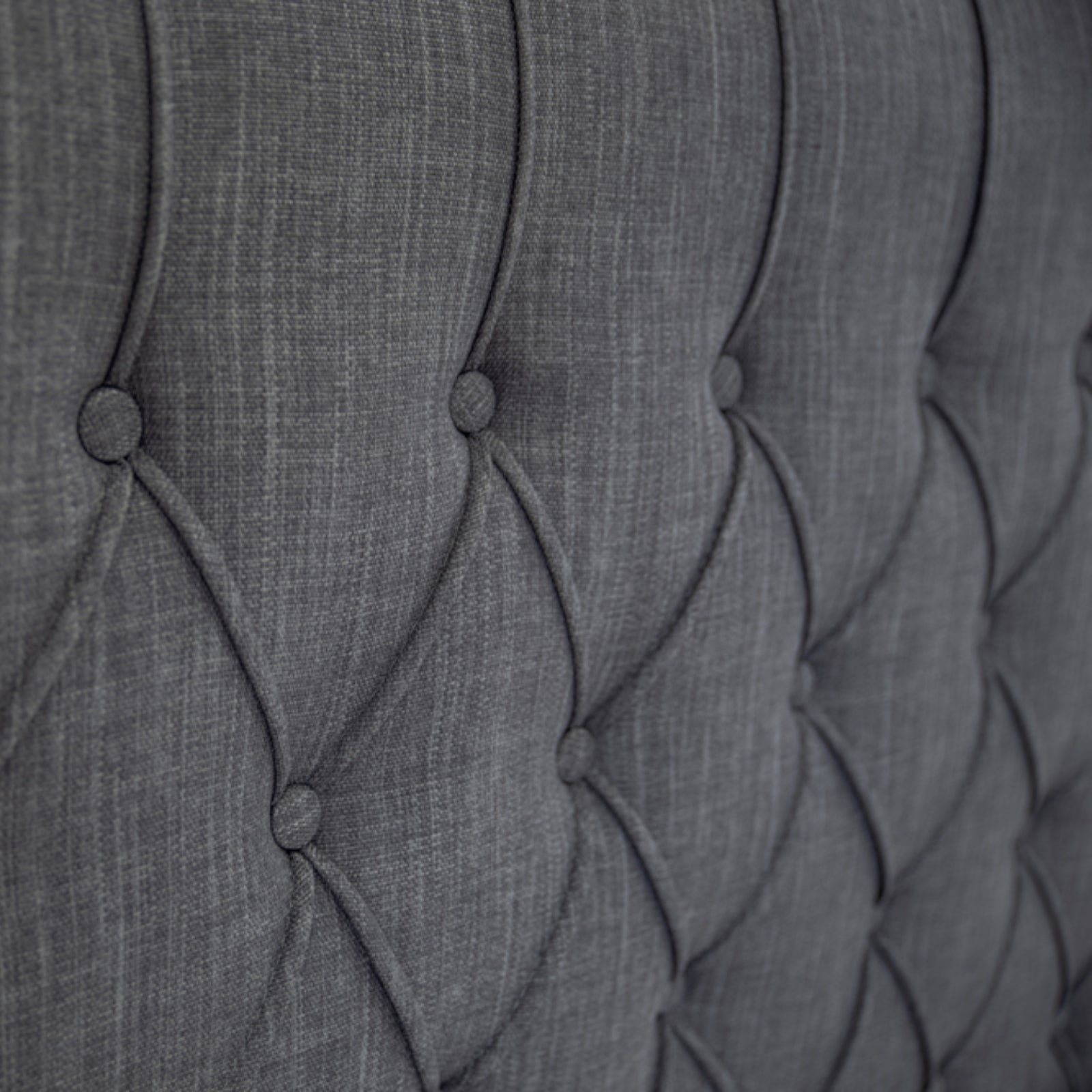 Now is the time to transform your bedroom into an ultra-luxurious retreat. Fill your personal space with this beautiful double bed with 4 drawers having an eye-catching look and design. The magnificent furniture piece in dark grey colour is made of sustainably harvested MDF wood, and special particle board. MDF wood is known for its resilience to moisture damage and great strength. Fully upholstered in soft polyester, the bed features thick foam and a comfortable bedhead with tufting and classy details. Robust legs made of rubber wood, strong slats, and central support provide the bed with toughness and great durability. The slats give it an excellent weight-bearing capacity. Not only that, 4 spacious drawers - 2 footboard drawers and 2 side drawers' maximize storage space, giving the bed great usability. All the drawers have full metal extension runners that help you keep the room tidy and well organized. The double-size bed that goes well with a variety of interior decor styles comes with a one-year warranty.