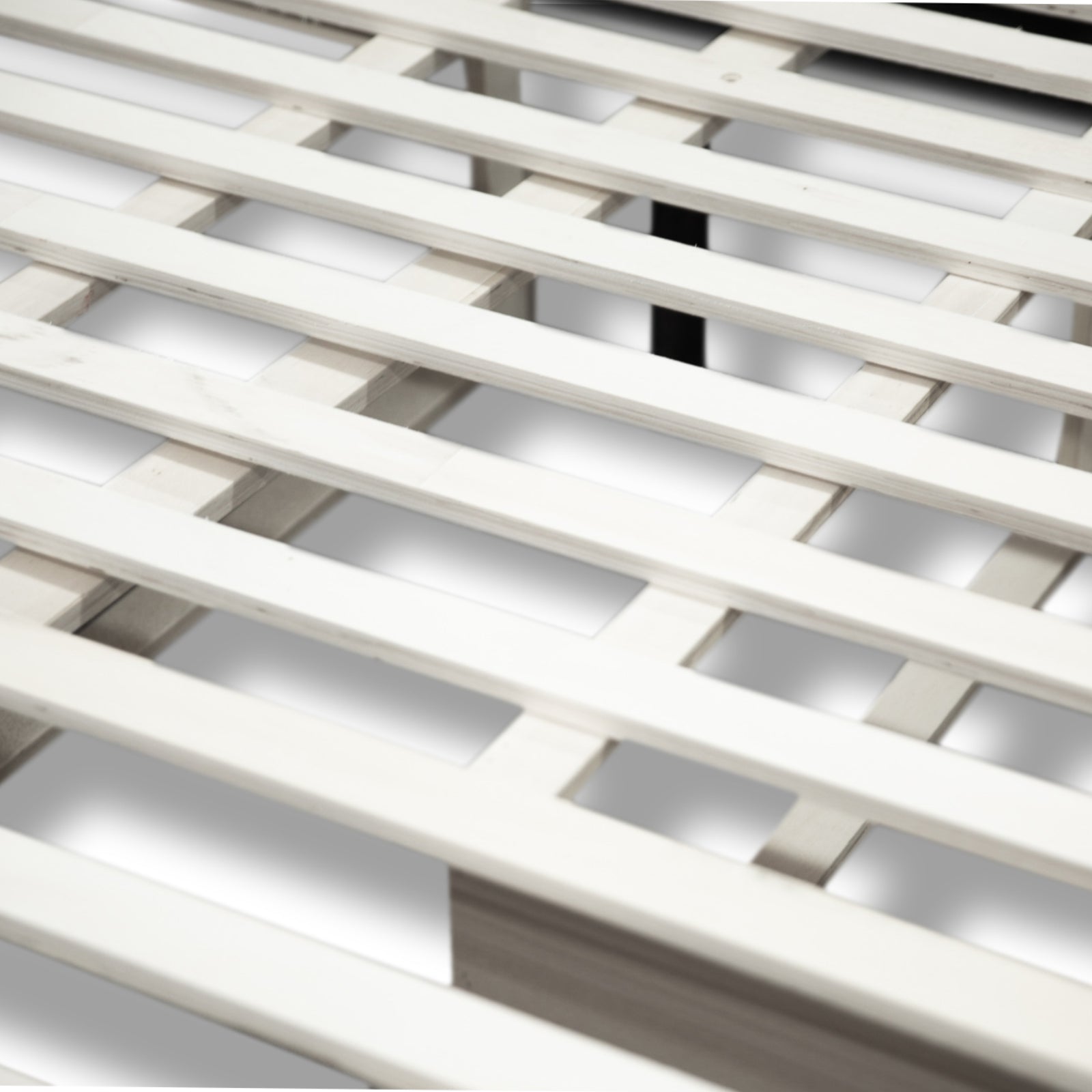 Now is the time to transform your bedroom into an ultra-luxurious retreat. Fill your personal space with this beautiful queen bed with 4 drawers having an eye-catching look and design. The magnificent furniture piece in stone colour is made of sustainably harvested MDF wood, and special particle board. MDF wood is known for its resilience to moisture damage and great strength. Fully upholstered in soft polyester, the bed features thick foam and a comfortable bedhead with tufting and classy details. Robust legs made of rubber wood, strong slats, and central support provide the bed with toughness and great durability. The slats give it an excellent weight-bearing capacity. Not only that, 4 spacious drawers - 2 footboard drawers and 2 side drawers' maximize storage space, giving the bed great usability. All the drawers have full metal extension runners that help you keep the room tidy and well organized. The queen-size bed that goes well with a variety of interior decor styles comes with a one-year warranty.